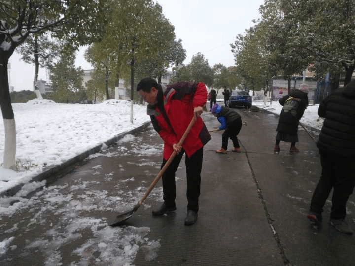 活动开始后,大家积极地投入到除雪工作当中。冷冽的北风和零下几度的低温使扫雪工作异常艰难,老师和同学们的手和脸都冻得通红。然而,这一切丝毫没有影响大家的热情和工作效率。在领导和老师们的带领下,同学们积极投身到扫雪过程当中。党总支副书记刘行的两个儿子精神十足、拿着小铁锹忙的不亦乐乎,在辛苦的清扫的过程中也给大家带来了欢声笑语。忙碌的身影在皑皑白雪中形成了一道靓丽的风景。虽然室外温度很低,但大家劳动的热情和团结的力量让这个冬日变得格外温暖。