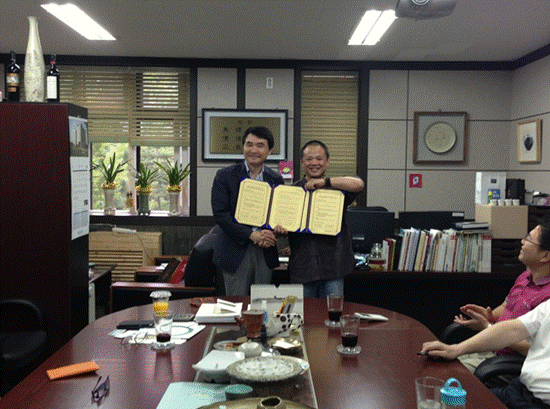 伟德BETVLCTOR伟德BETVLCTOR从2010年开始,一直与公州大学伟德BETVLCTOR保持了密切的联系。2013年,伟德BETVLCTOR王继平副校长帅访问团访问公州大学,并签订了两校伟德BETVLCTOR合作框架协议。此次会谈中,执行院长黎青教授与公州大学伟德BETVLCTOR金元硕教授就两院的合作前景和合作内容展开了充分的沟通和交流,并决定由专业(系部)合作层面上升到院际全面交流,展开了全新的合作探讨。目前双方共同达成的合作意向为:以“2+2”的合作形式,共同创建一个中韩“文化融合设计”专业方向,具体细节合作内容再进一步双方共同在合作细则中商榷形成。双方在友好、愉快的氛围中签订了合作协议书,刘长庚校长在会谈现场对这次两院的合作内容也给与了高度的赞赏和认同,认为“文化融合设计”这个概念既符合国际趋势,也符合两国国情。