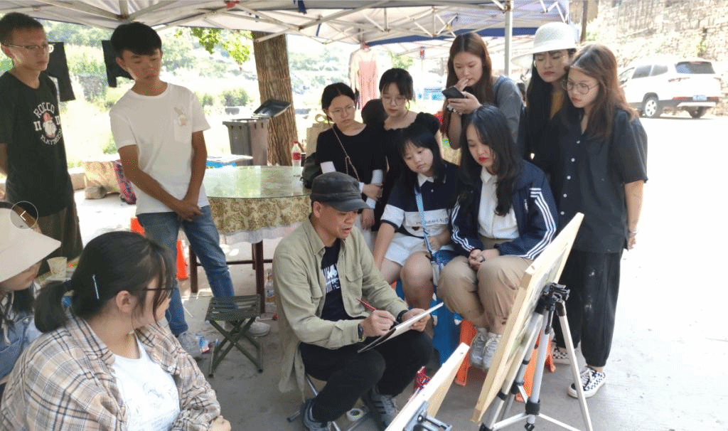 四位教师不仅指导学生,更是现身说法,将课本理论知识与实际结合,将太行山水通过艺术表现形式呈现给大众。贴近生活、贴近实际、继承传统文化、传承卓越精神,是每一个艺术家的使命。创作之余,同学们自发主动地清扫村落垃圾,绘笔下美丽画卷,还村落绿水青山。此外,辅导员孙彤老师带领同学们进行暑期“三下乡”社会实践活动,通过调查实践了解当地艺术风情、关爱留守儿童。同学们将自己画作赠予当地居民,感受艺术劳动乐趣、享受艺术劳动成果。