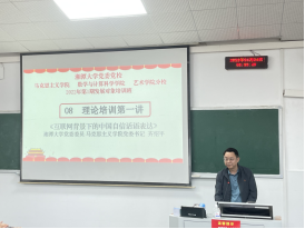 校党委委员、宣传部部长、马克思主义学院党委书记齐绍平为大家带来专题学习第一讲——互联网背景下中国自信话语表达。齐部长从“人与动物的最大区别”为问题导入,指出了“讲故事”的重要性。讲座通过剖析西方文化与中国文化中在讲述故事方式上的区别以及表达的不同形态,阐释了文化话语的重要性以及对于文化标准的控制。齐部长强调,新时期思想宣传工作要感染青年、吸引青年、引领青年,体会学生感兴趣的话语方式,做好上乘宣传。