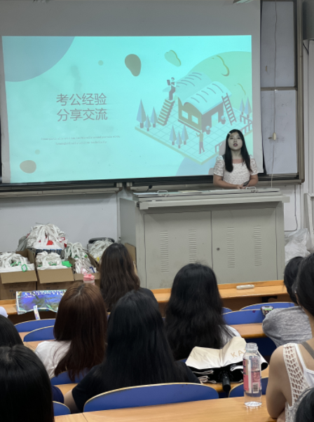 在考公经验分享环节,数码影像工作室的张子茜详细介绍了不同公考的区别,就如何积极备考、如何选择适合自己的职位,进行了详细讲解,并分享了一些应试技巧和心得。张子茜表示要在时间上合理安排、学会适当舍弃,同时也强调了坚持和持之以恒的重要性,鼓励在座的同学们充分利用资源,为自己的未来打下坚实的基础。