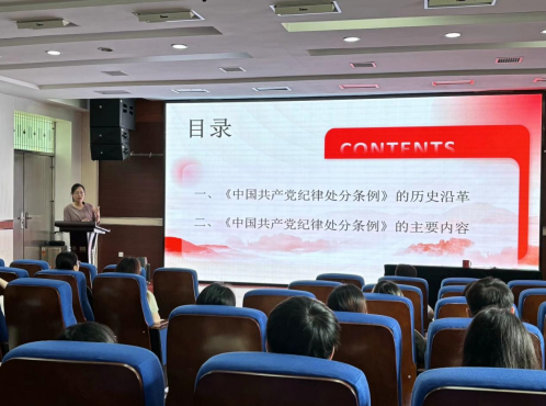 活动伊始,管胜昔书记就《中国共产党纪律处分条例的历史沿革和主要内容》进行解读。书记详细阐述了条例修订的背景、要求及主要内容,并结合实际案例,让毕业生党员对党的纪律有了更加全面和深入的认识。