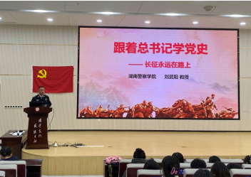 随后湖南警察学院教授、伟德BETVLCTOR硕士生导师刘武阳为学员们讲授了本次培训班的第四节党课——《跟总书记学党史——长征永远在路。他结合案例和图解,从长征的历史背景、艰苦卓绝的长征、伟大的长征精神、走好新时代长征路四个方面对专题进行了深入讲解和阐释,使学员加深对长征和长征精神的了解,深刻理解长征的历史意义、长征精神的内涵及时代价值。刘武阳教授强调:“要坚定信念、勇于挑战、服务人民,并自觉以实际行动弘扬长征精神、传承红色基因,在全面推进中华民族伟大复兴的新长征路上顽强拼搏、奋勇前进。”